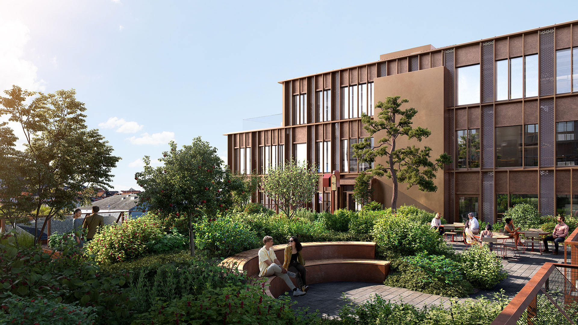 For Norges Handelshøyskole, NHH, har vi laget en mulighetsstudie for en ny grønn og bugnende takhage, naturtak kombinert med solceller, gode sosiale soner og dyrking av mat.