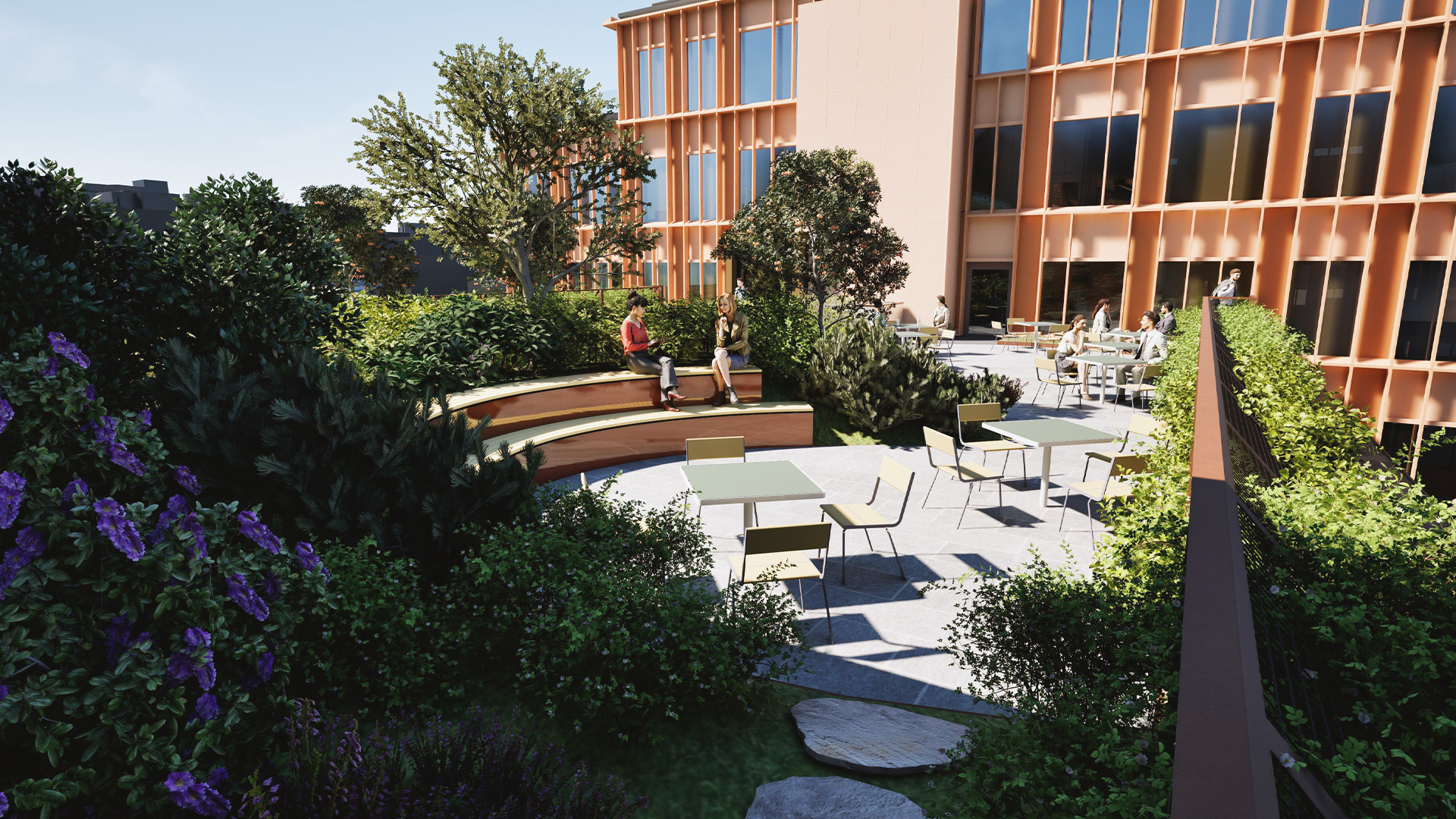 Dette taket skal være et godt sted å ta en kaffe, eller en prat med venner og kollegaer – omgitt av frodige planter og natur. Natur med et rikt biologisk mangfold og en oppbygning som holder tilbake overvann og hindrer økt belastning på det kommunale ledningsnettet. Våre tak er designet og programmert slik at de naturlige prosessene skal foregå uten for mye innblanding og vedlikehold. Fugler og innsekter skal høste av taket og finne seg trygge naturlig oppholdssteder.
